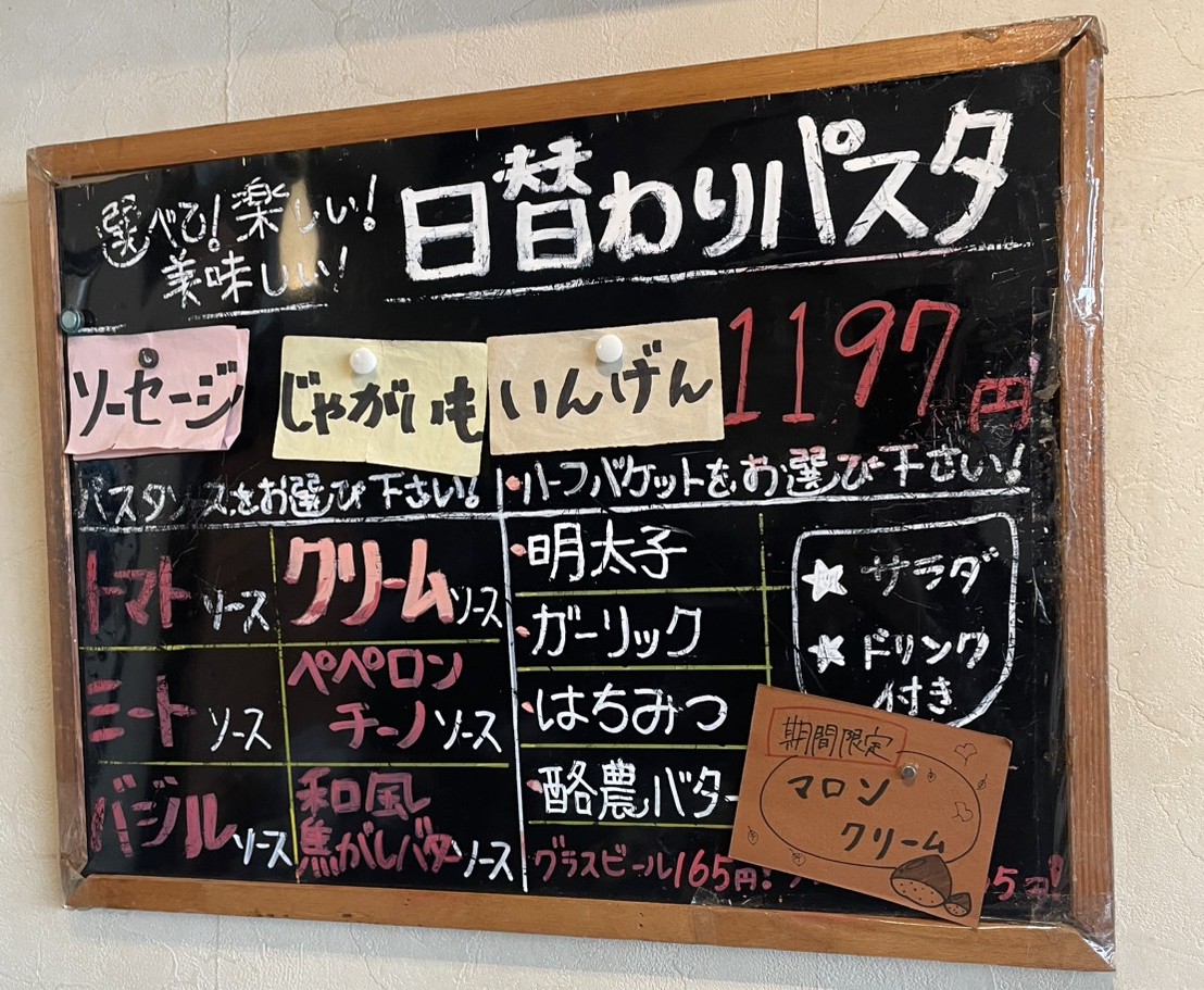 今回注文したのは、「平日限定 日替わりパスタランチ(税込1,197円)」サラダ・ドリンク・バケット付きという、満足感の高いセットです!