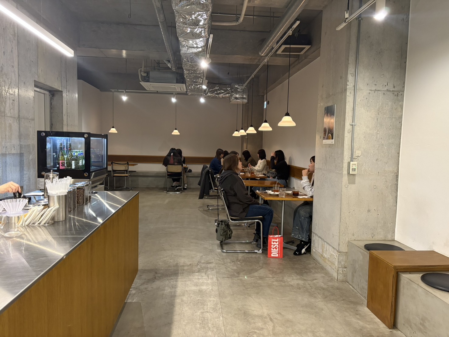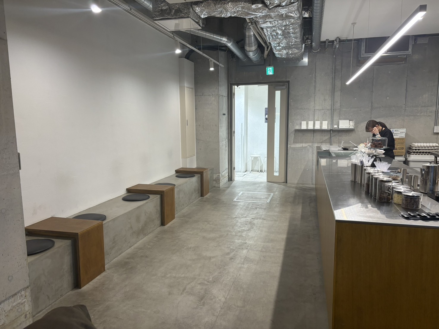 無機質で洗練されたデザインの空間は、広々とした落ち着いた雰囲気で、照明も明るく、開放感があります。